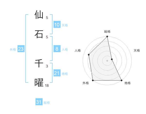 仙石 千曜さんを姓名の画数から五運を鑑定
