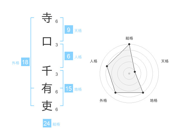 寺口 千有吏さんを姓名の画数から五運を鑑定