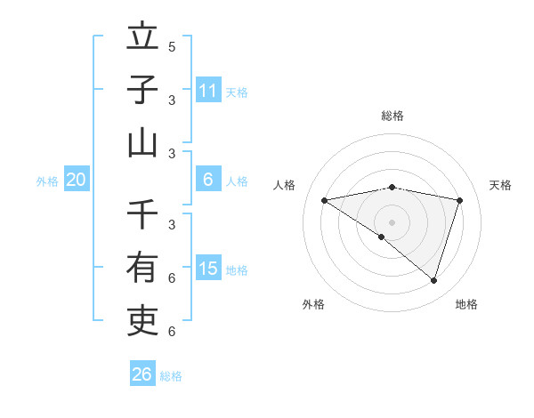 立子山 千有吏さんを姓名の画数から五運を鑑定