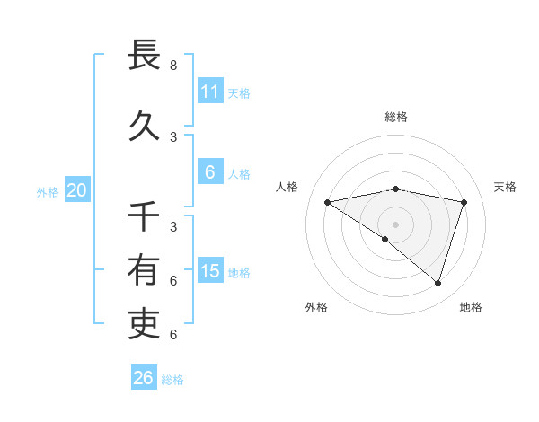 長久 千有吏さんを姓名の画数から五運を鑑定