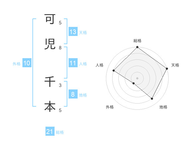 可児 千本さんの総格は21画の5点!