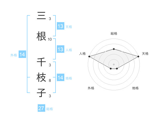 三根 千枝子さんの天格は13画の5点!
