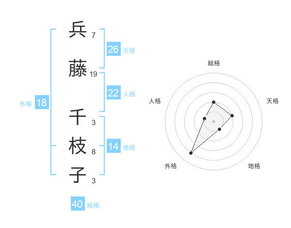 兵藤 千枝子さんを姓名の画数から五運を鑑定