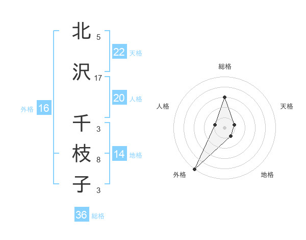 北沢 千枝子さんを姓名の画数から五運を鑑定