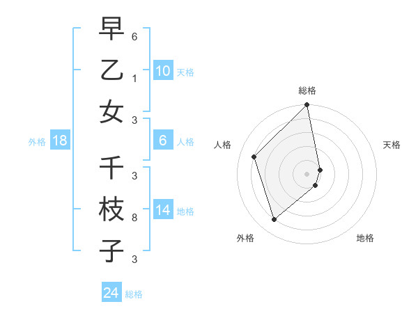 早乙女 千枝子さんの総格は24画の5点!