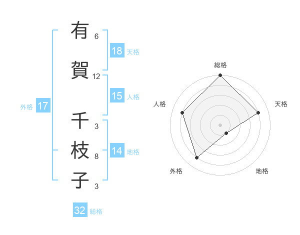 有賀 千枝子さんを姓名の画数から五運を鑑定