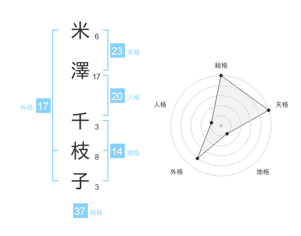 米澤 千枝子さんの総格は37画の5点