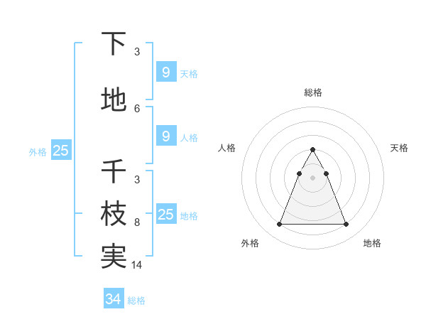 下地 千枝実さんを姓名の画数から五運を鑑定