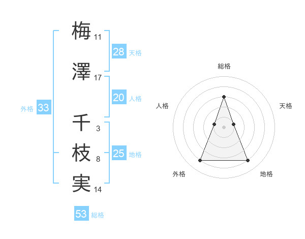 梅澤 千枝実さんを姓名の画数から五運を鑑定