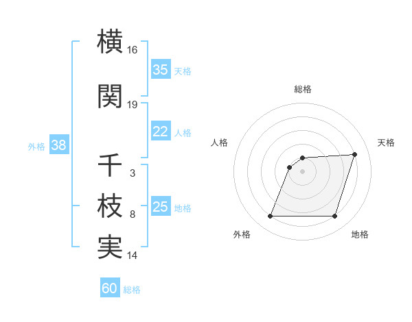 横関 千枝実さんを姓名の画数から五運を鑑定