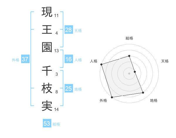 現王園 千枝実さんの外格は37画の5点!