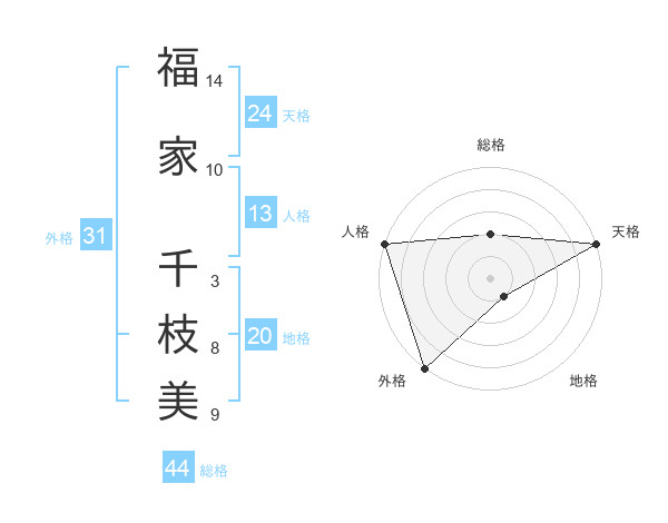 福家 千枝美さんを姓名の画数から五運を鑑定