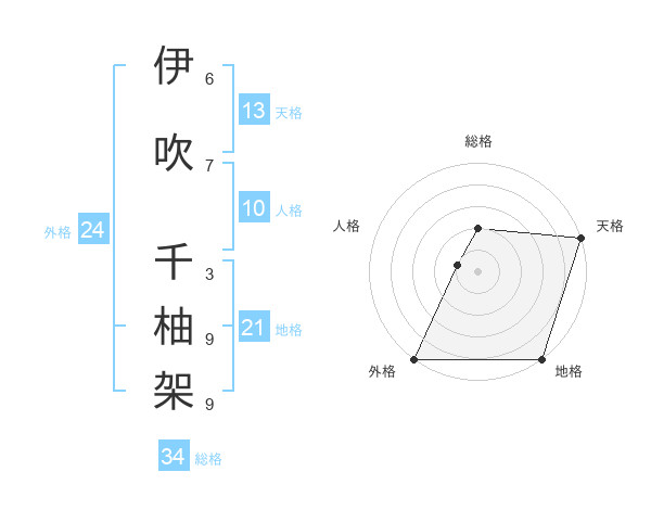 伊吹 千柚架さんの外格は24画の5点!
