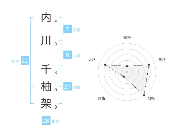 内川 千柚架さんを姓名の画数から五運を鑑定