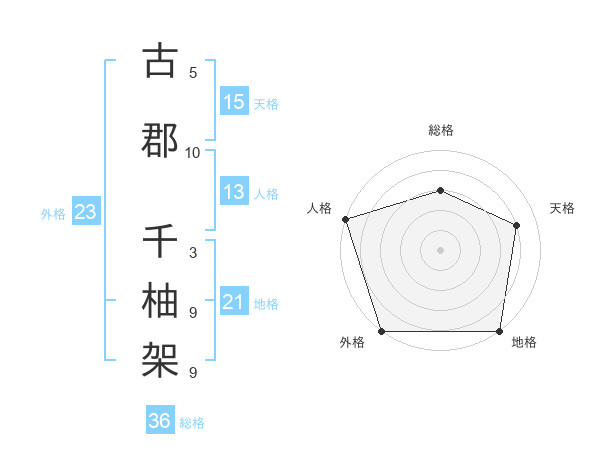 古郡 千柚架さんを姓名の画数から五運を鑑定