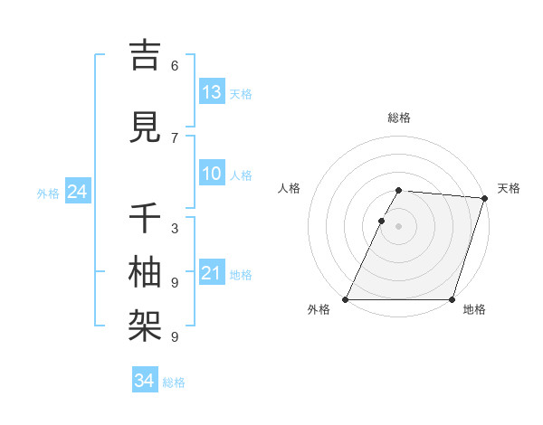 吉見 千柚架さんの天格は13画の5点!