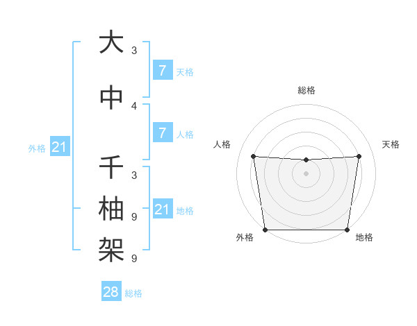 大中 千柚架さんの外格は21画の5点!
