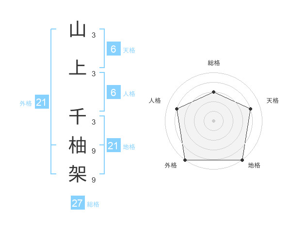 山上 千柚架さんを姓名の画数から五運を鑑定