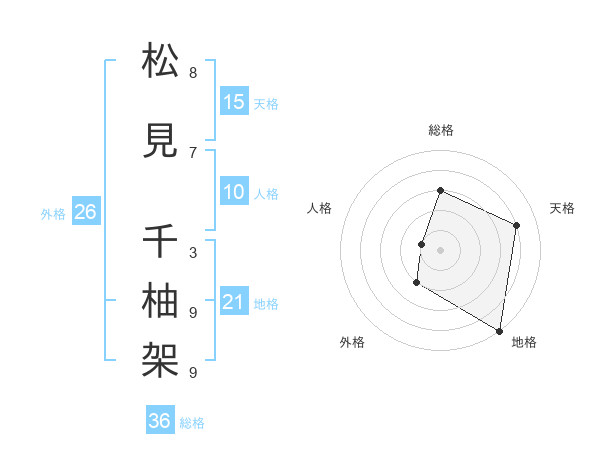 松見 千柚架さんの天格は15画の4点!