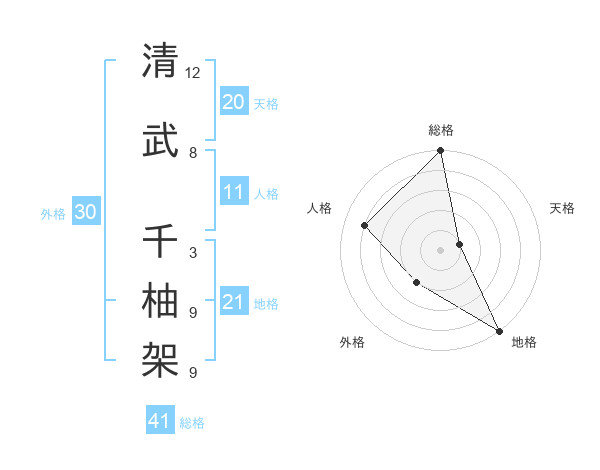清武 千柚架さんの地格は21画の5点!