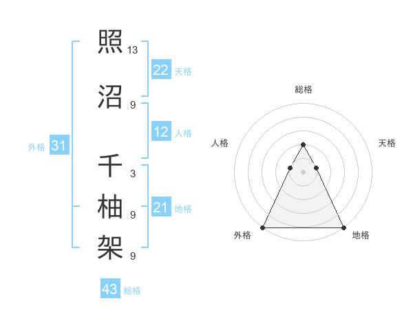 照沼 千柚架さんを姓名の画数から五運を鑑定