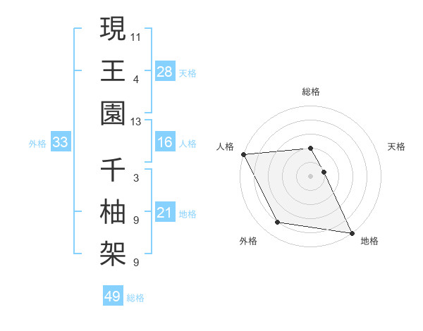現王園 千柚架さんを姓名の画数から五運を鑑定
