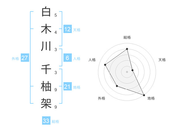 白木川 千柚架さんを姓名の画数から五運を鑑定