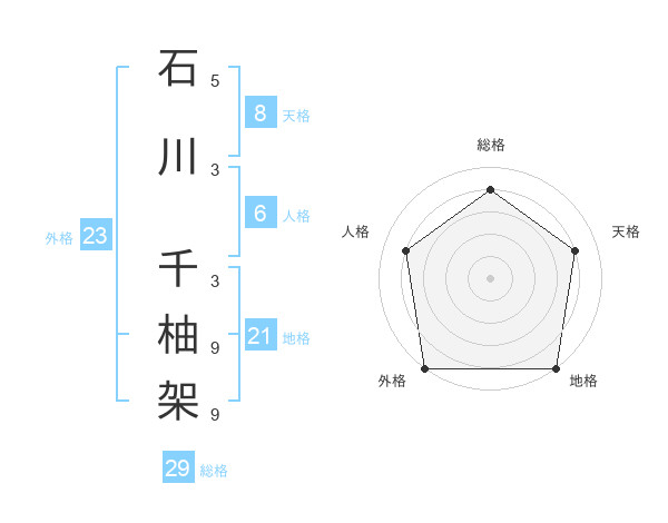 石川 千柚架さんを姓名の画数から五運を鑑定