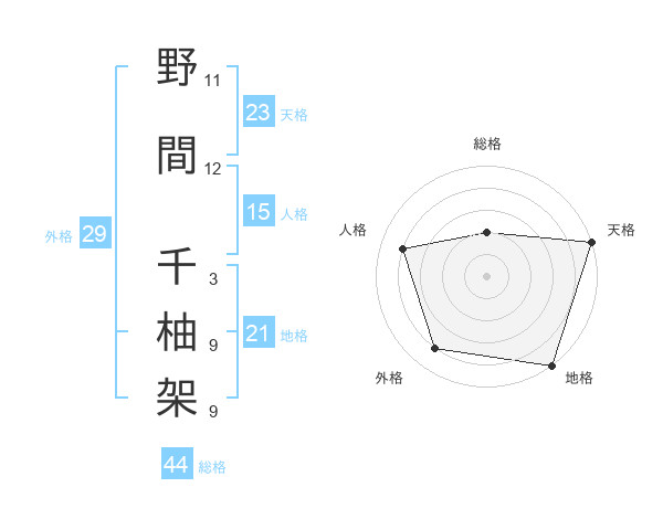 野間 千柚架さんを姓名の画数から五運を鑑定