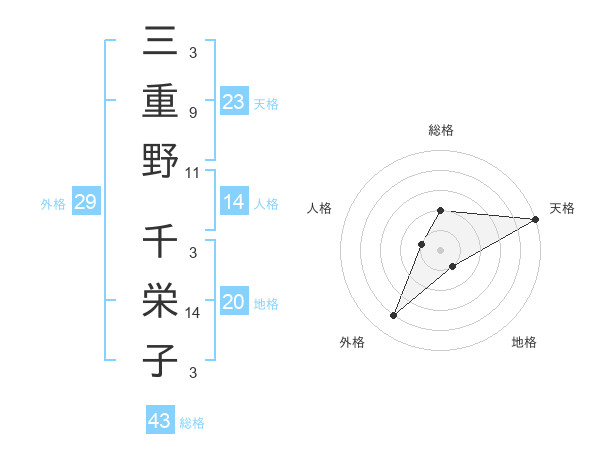 三重野 千栄子さんを姓名の画数から五運を鑑定