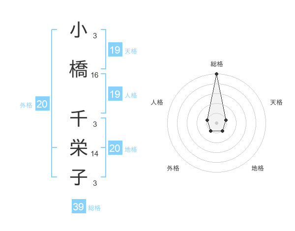 小橋 千栄子さんの総格は39画の5点!