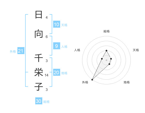 日向 千栄子さんの総格は30画の2点!