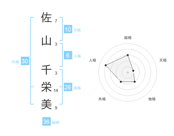 佐山 千栄美さんを姓名の画数から五運を鑑定