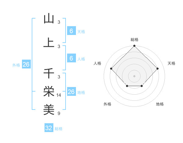 山上 千栄美さんを姓名の画数から五運を鑑定