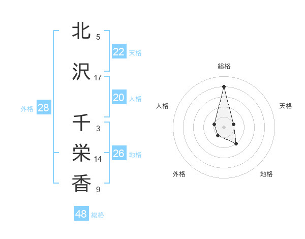 北沢 千栄香さんを姓名の画数から五運を鑑定