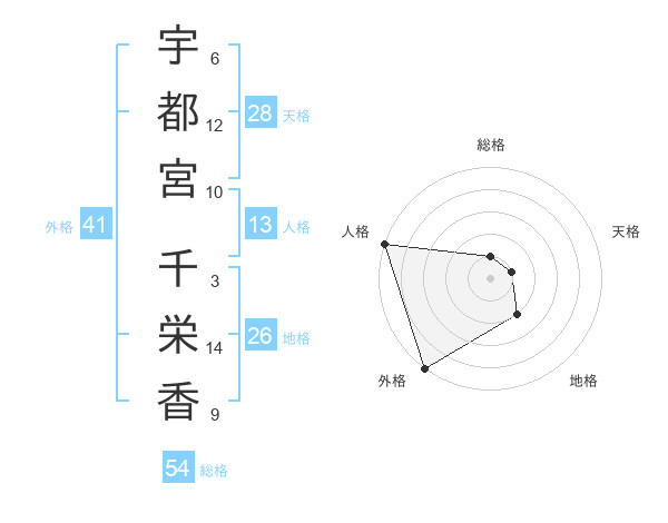 宇都宮 千栄香さんを姓名の画数から五運を鑑定