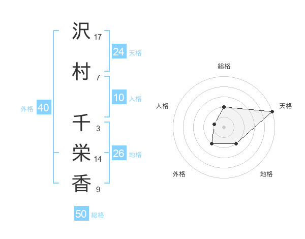 沢村 千栄香さんの総格は50画の2点!