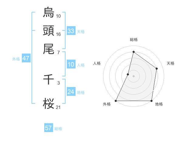 烏頭尾 千桜さんを姓名の画数から五運を鑑定