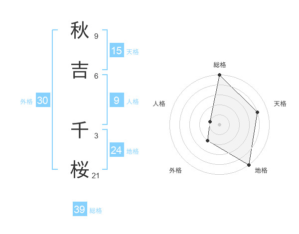 秋吉 千桜さんを姓名の画数から五運を鑑定