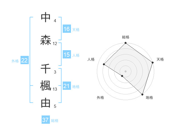 中森 千楓由さんを姓名の画数から五運を鑑定