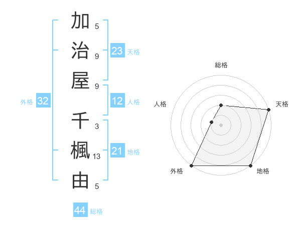加治屋 千楓由さんの総格は44画の2点