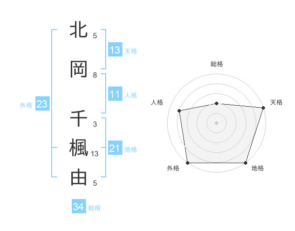北岡 千楓由さんを姓名の画数から五運を鑑定