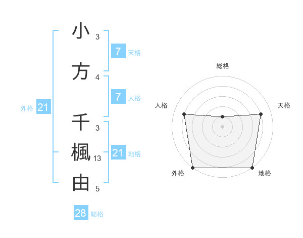 小方 千楓由さんを姓名の画数から五運を鑑定