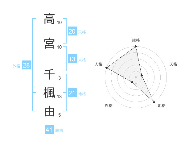 高宮 千楓由さんの総格は41画の5点!