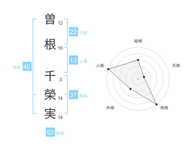曽根 千榮実さんを姓名の画数から五運を鑑定