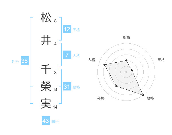 松井 千榮実さんを姓名の画数から五運を鑑定