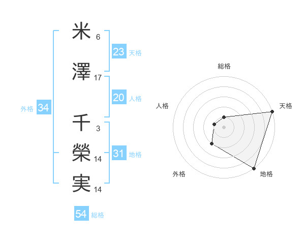 米澤 千榮実さんを姓名の画数から五運を鑑定