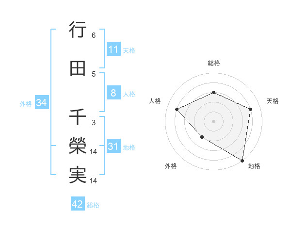行田 千榮実さんの総格は42画の3点!