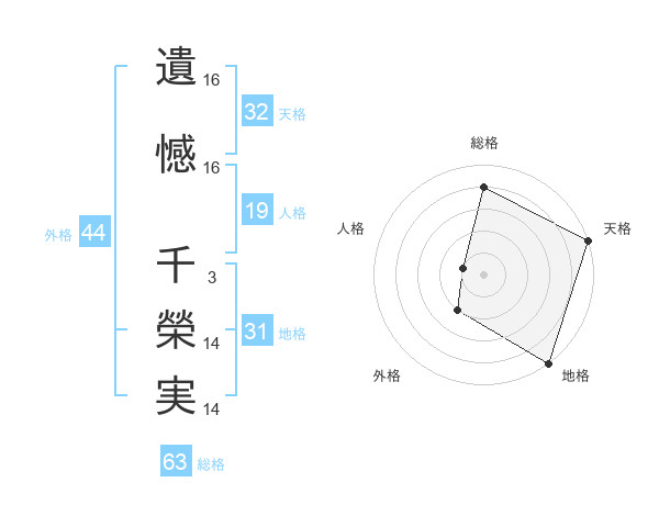 遺憾 千榮実さんの地格は31画の5点!