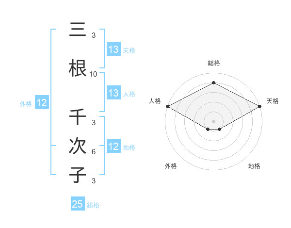 三根 千次子さんの天格は13画の5点!